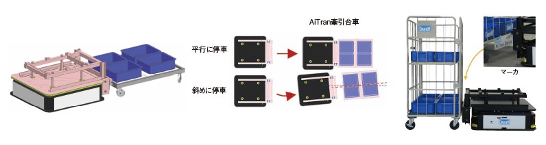 自動で牽引台車を連結
