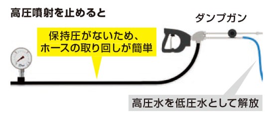 高圧ホース内に圧力が掛からず、取り回しが簡単にできます。