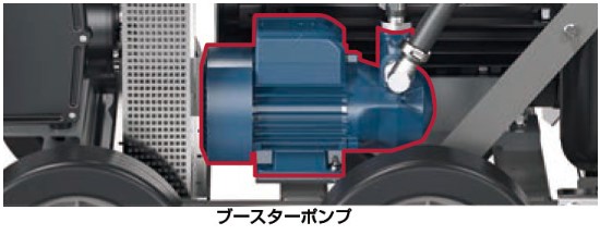 低水圧地域や高所では、ブースターポンプをご利用いただくことで安定給水を保証。