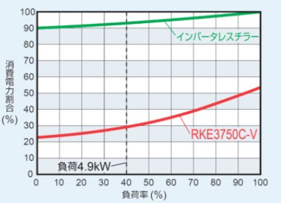 ※消費電力割合は、インバータレスチラーが60Hzの定格条件で運転した際の