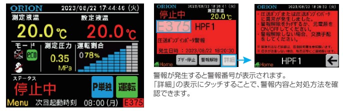 各種設定や運転状況が視覚的に画面にタッチすることで操作・確認ができます。