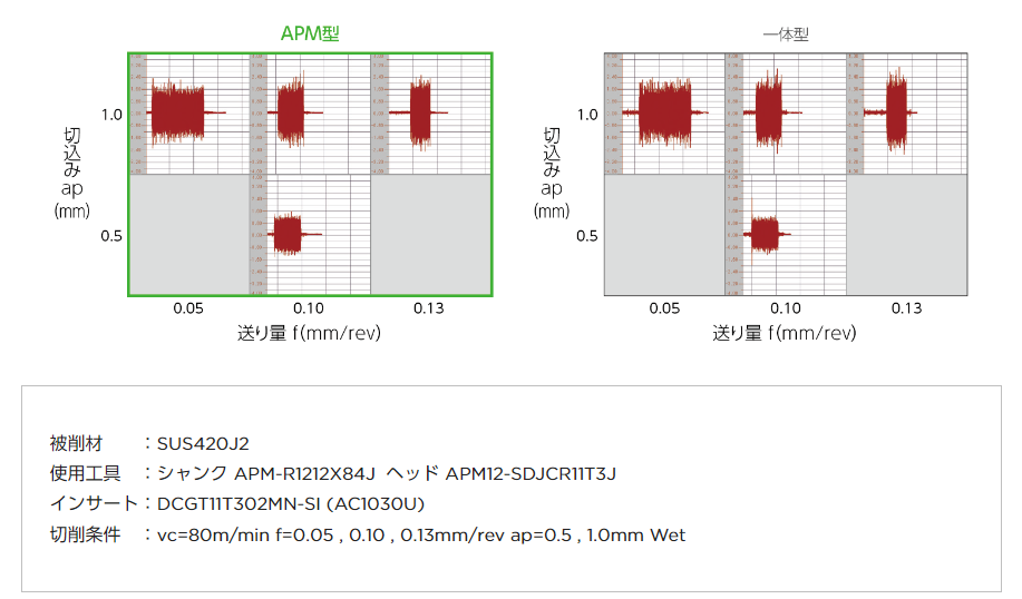 APM型は一体型ホルダと同等の低振動性能を実現