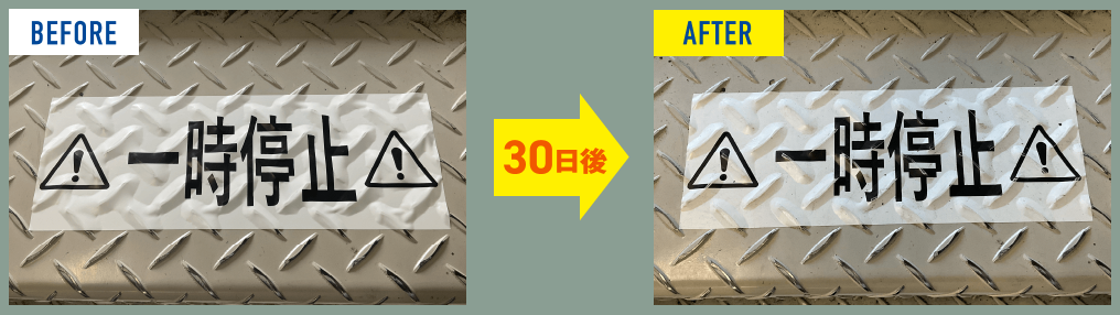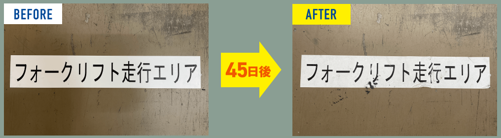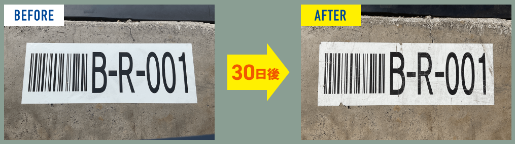 人が歩く通路に1カ月放置しても印字面が消えません!