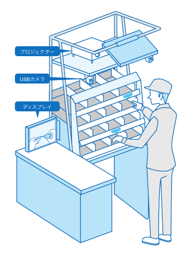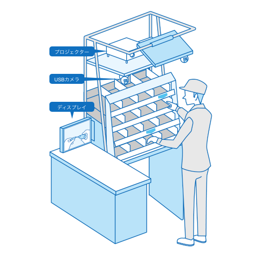 プロジェクターで棚や製品に直接ガイドを投影することでミスを防止