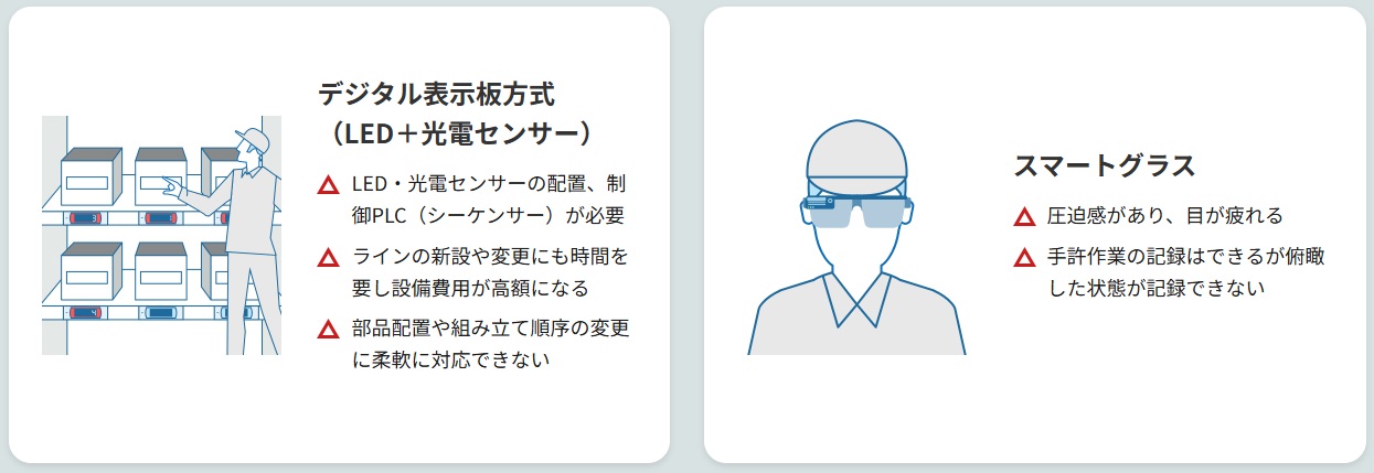 多品種少量生産における組立や検査作業ミスのゼロ化を支援します。