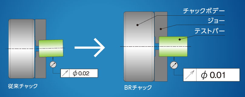 ◎◎テストバーの振れ量です。BR12では把握精度は0.015mm以下となります。