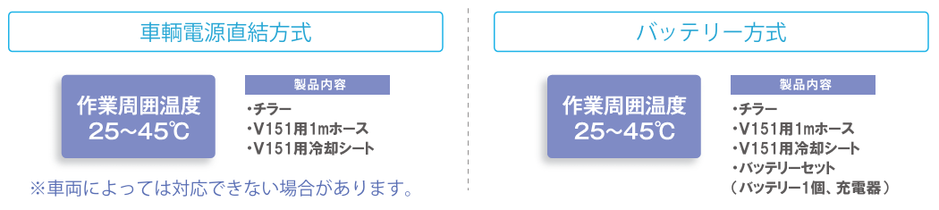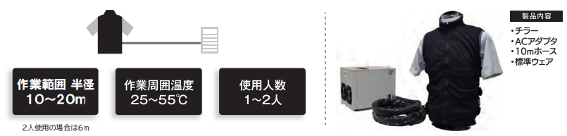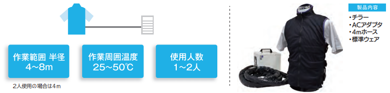 高温下での作業をされる作業者を強力に冷却。電源があればどこでも冷却が可能です。