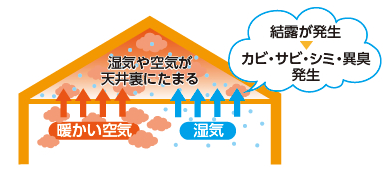 そのため、カビやサビ、異臭などの原因になっています。