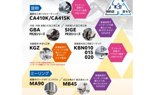 対象商品のご購入で京セラの最新切削工具をお得に試せるキャンペーンを実施中です!! キャンペーン内容 製品名クリックでカタログが開きます 鋳鉄加工用CVDコーティング「CA410K/CA415K」 高硬度材加 … 続きを読む 【京セラ】キャンペーン開催中!(~3/31まで)