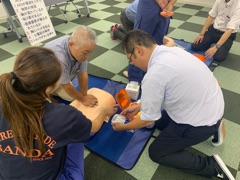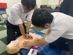 AEDの使用方法、周囲への指示の出し方等を教えていただきました。
