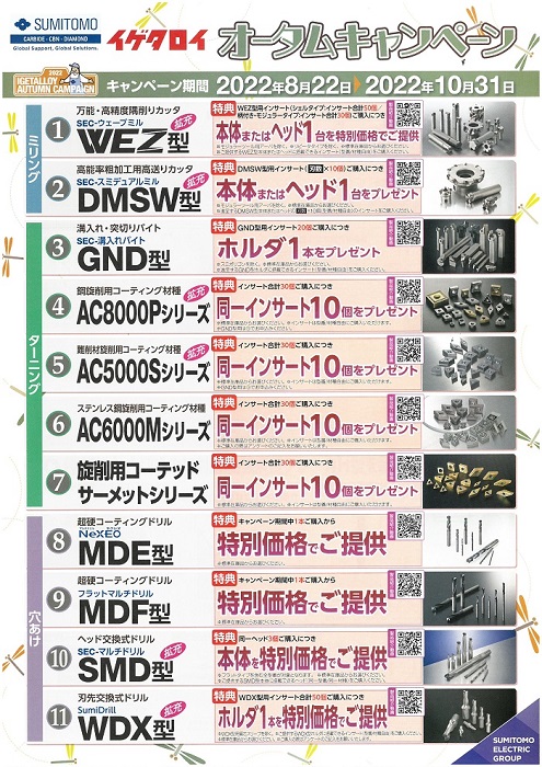 イゲタロイの製品に関しまして 2022年8月22日(月)~10月31日(月)までキャンペーンが行われます。 対象の製品をご購入頂く際に様々な特典がございますので ぜひこの機会にお買い求めください。 詳細は担当の営業にお気軽にお問い合わせ下さい。