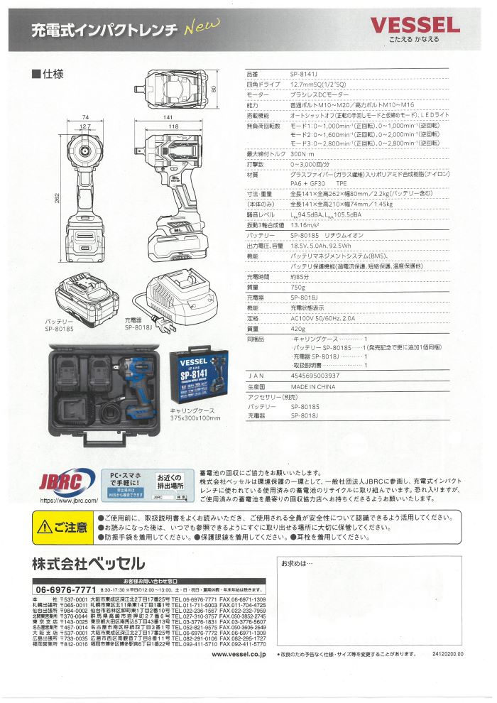ベッセルの充電式インパクトレンチをご案内致します。 詳細は担当の営業にお気軽にお問い合わせ下さい。