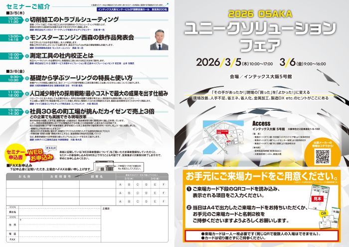 2026年3月にインテックス大阪にてユニークソリューションフェアが開催されます 是非この機会にご参加ください。 詳細は担当の営業にお気軽にお問い合わせ下さい。
