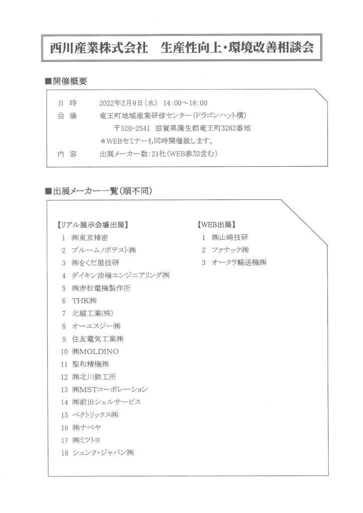 【滋賀営業所】生産性向上・環境改善相談会のご案内