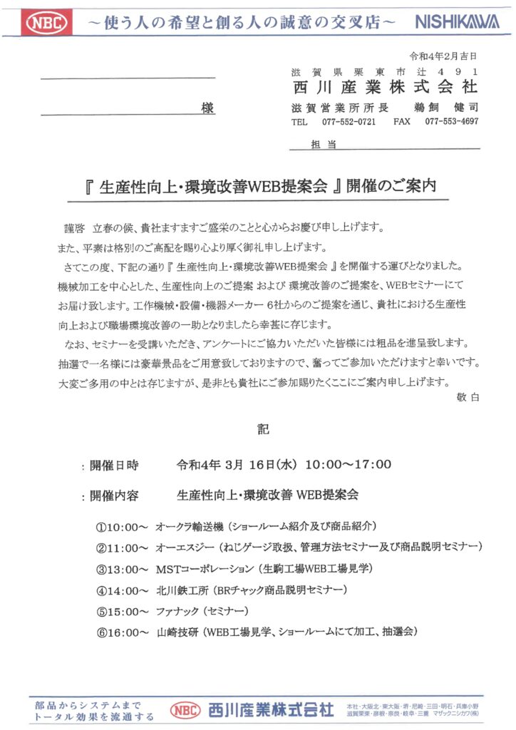 この度、滋賀営業所主催の生産性向上・環境改善WEB提案会を開催いたします。