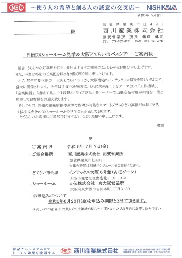 日伝DXショールーム見学&大阪どてらい市バスツアーのご案内です。