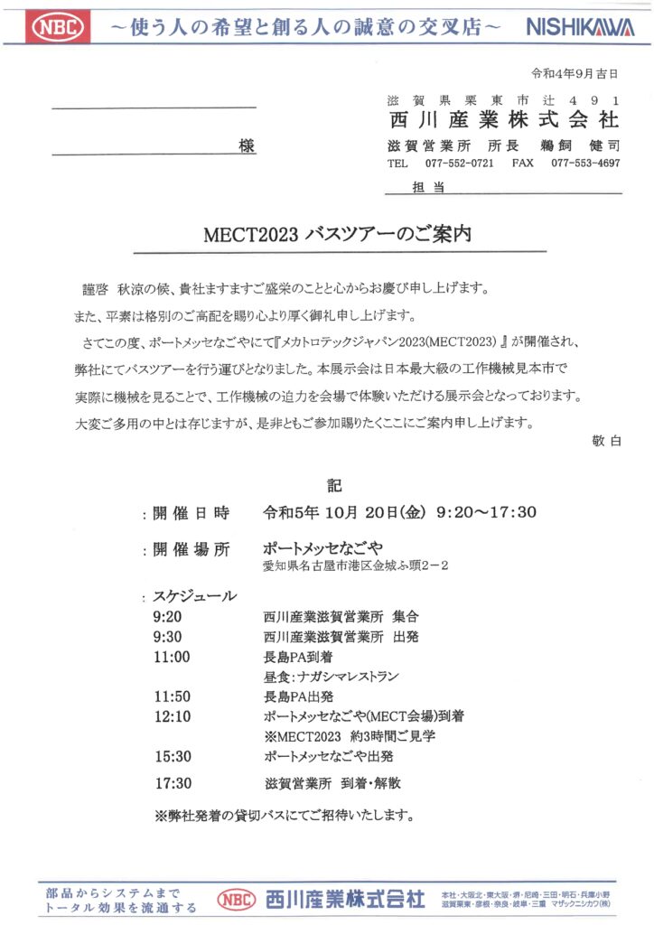 MECTバスツアーのご案内です。