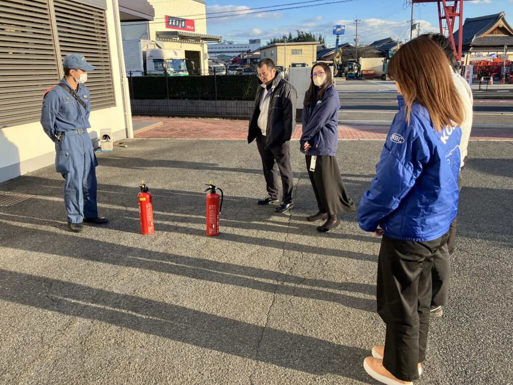 先日、消防隊員の方に来ていただいき消火器の使い方について教えてもらいました。
