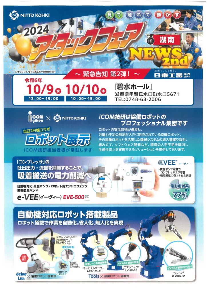 工具だけの展示ではなく日東工器の工具とロボットの組み合わせで作業を自動化。 省人化、無人化のご提案