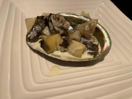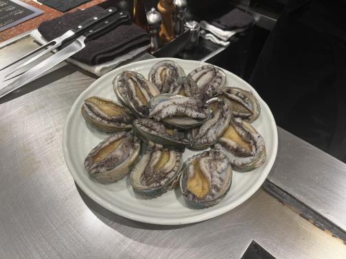 鮑を始めて食べました。中々活けアワビを目の前で調理して食べれるところは