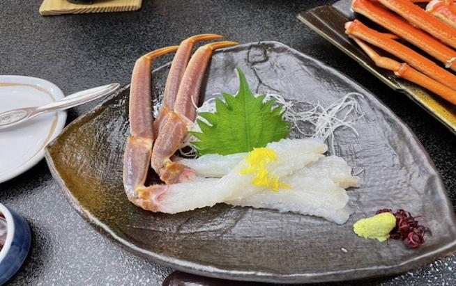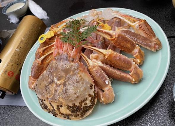 フルコースということでカニ刺しから始まり、茹でガニ、焼きガニ、カニの天ぷら、