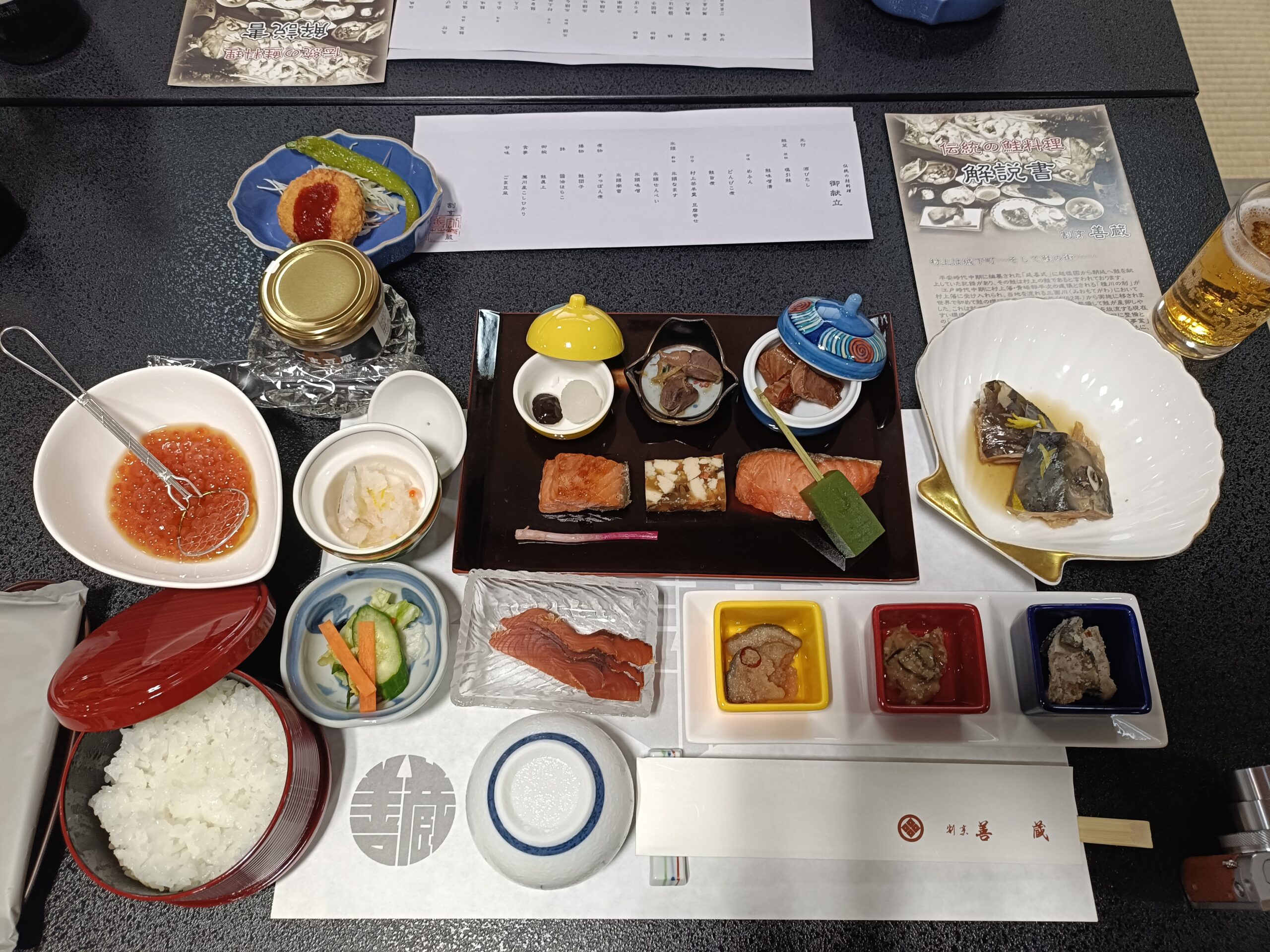 到着後は村上市へ移動し、鮭づくしの昼食を頂きました。