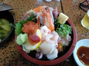 お昼はボリューム満点の海鮮丼を頂きました!