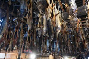 鮭を干している工房で、見学&説明を聞きました。(千年鮭・きっかわ)