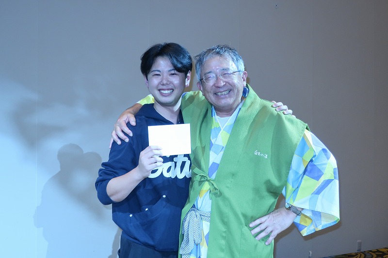 また、この日はサプライズで、旅行会社とホテルからのご厚意で、新潟産コシヒカリ食べ比べセットと、華鳳宿泊券を頂きましたので、急遽社長とのじゃんけん大会!