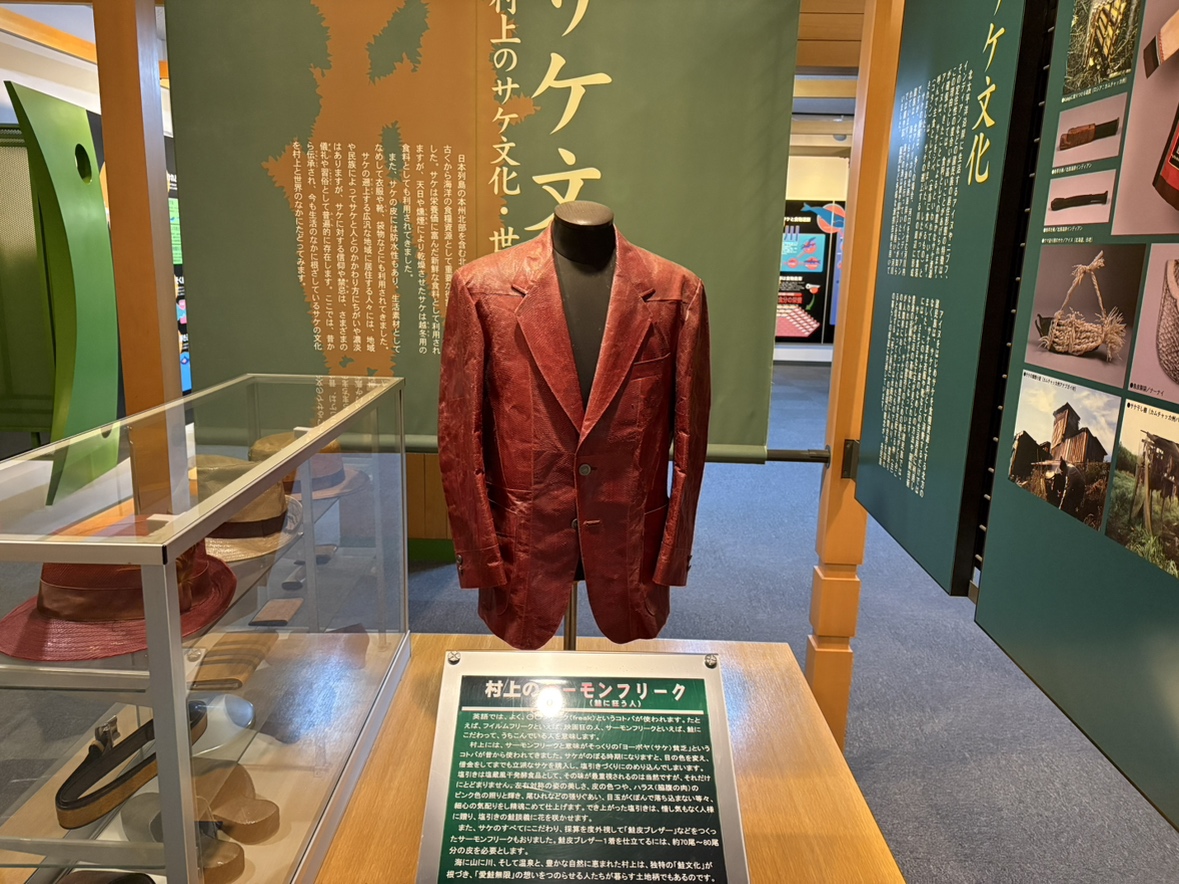 鮭の皮で作ったジャケットまで展示されていました!(イヨボヤ会館)