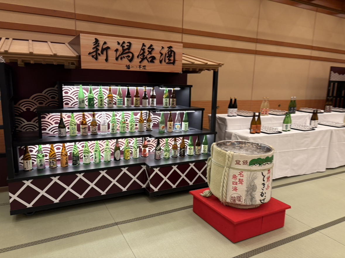 洋宴会ですが、新潟に来たら日本酒は必須!ということで、昨日に引き続き、試飲会を開催。